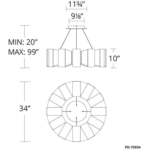 Chronos Pendant Ceiling Light 12 Light 34 inch Black