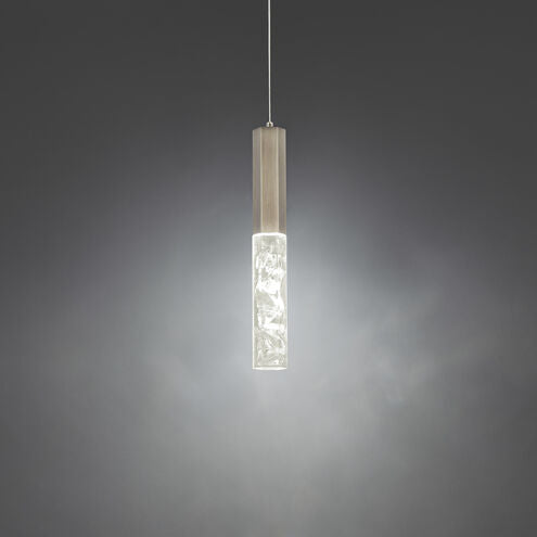 Reminiscent of great coastal rock formations, this elegant pendant captivates with reclaimed crystal shards frozen and illuminated to sparkle. This sleek mini pendant carries its weight with a luxurious upscale appeal. Align in groups above islands, tables and counters as a design alternative over traditional hanging elements. A statement making luxury created with a minimalist vocabulary. Energy efficient integrated LED's provide a long-lasting maintenance-free bright and even illumination throughout any space.