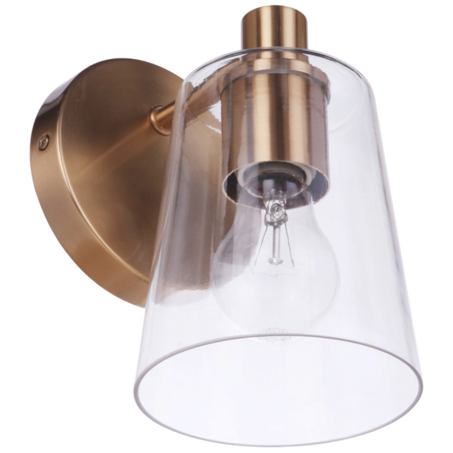 The Emilio 1 Light Wall Sconce in Satin Brass is a perfect blend of transitional style and functionality. This wall-mounted fixture is damp rated, making it suitable for humid environments, and requires one medium base E26 bulb with a maximum wattage of 60W (bulb not included). It features a sleek design with dimensions of 5 inches in width and depth, and an 8-inch height, along with a 6.61-inch extension. The clear glass shade beautifully diffuses light, ensuring bright and clean illumination for any setting.