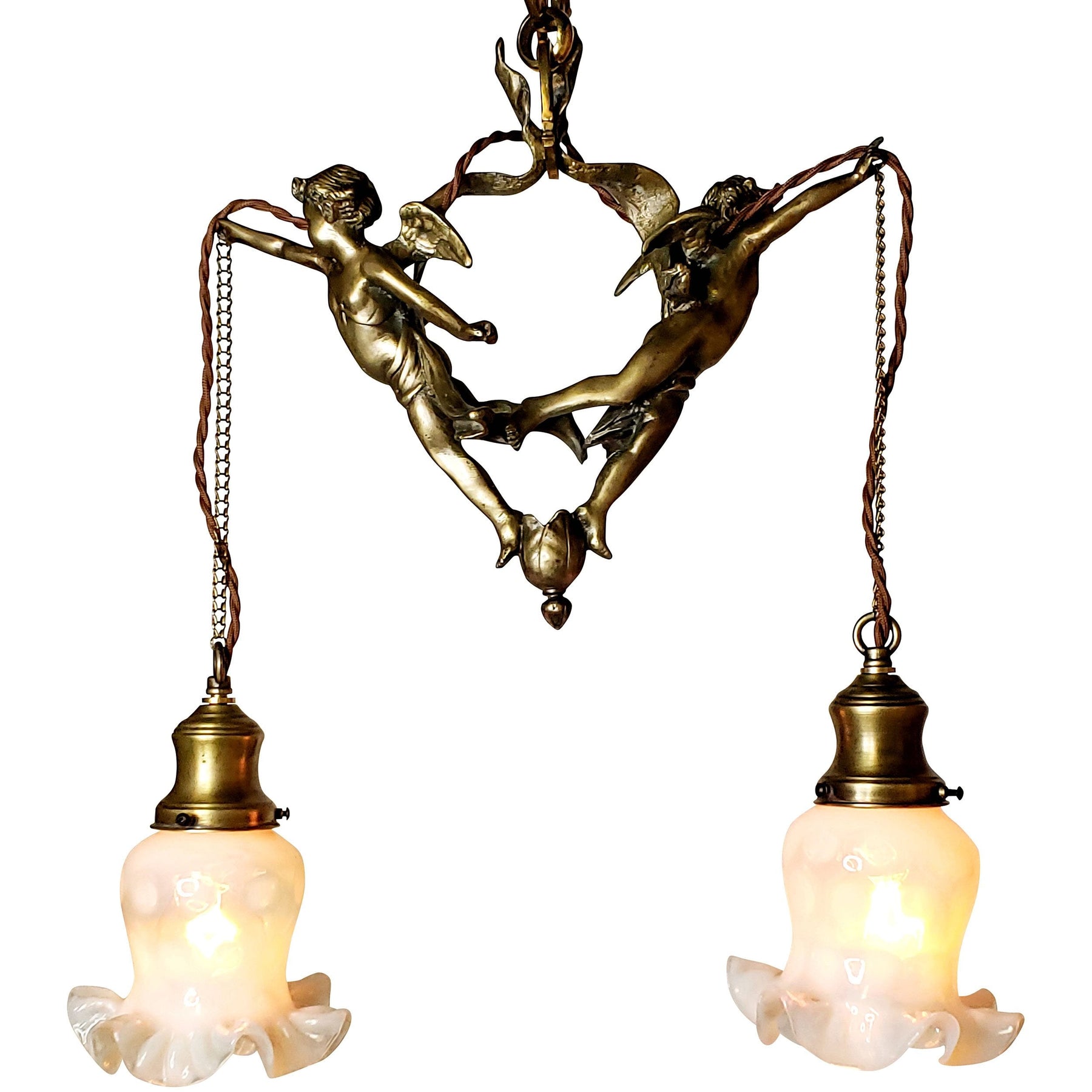 22 Inch Handmade Antique Cherub Two-Light Chandelier With Brass Chain