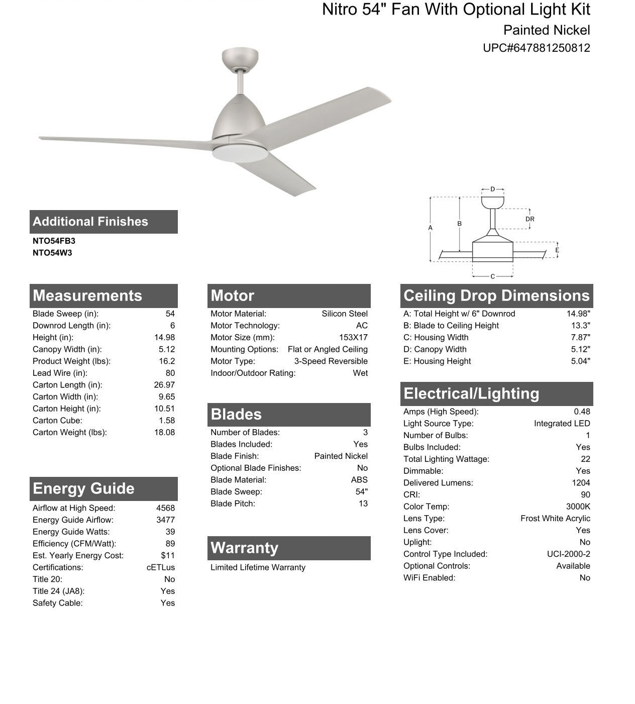 54" Nitro in Painted Nickel w/ Painted Nickel Blades